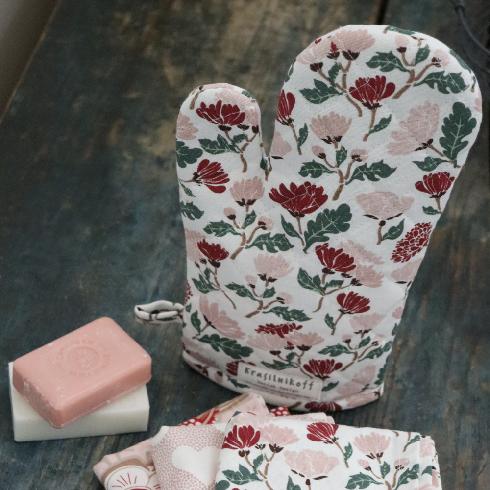 OVEN MITT FLOWERS RED