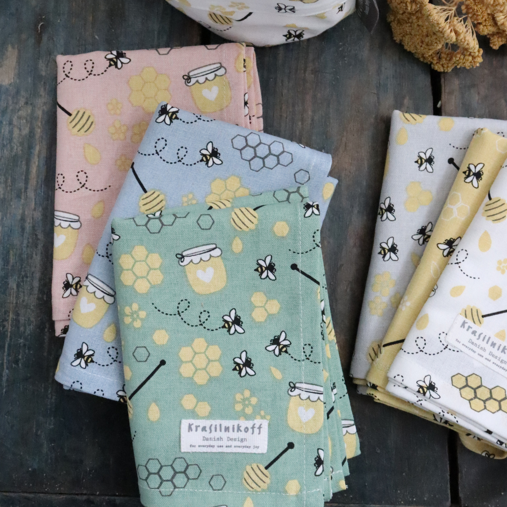 The Krasilnikoff tea towels for everyday use and everyday joy. They are available in many beautiful patterns, colours and designs. They can be mixed and matched with a large selection of porcelain, zinc products and other textiles. To reduce wrinkles and increase the absorbency factor of your tea towels, soak them in cold water for 24 hours before the first wash.
