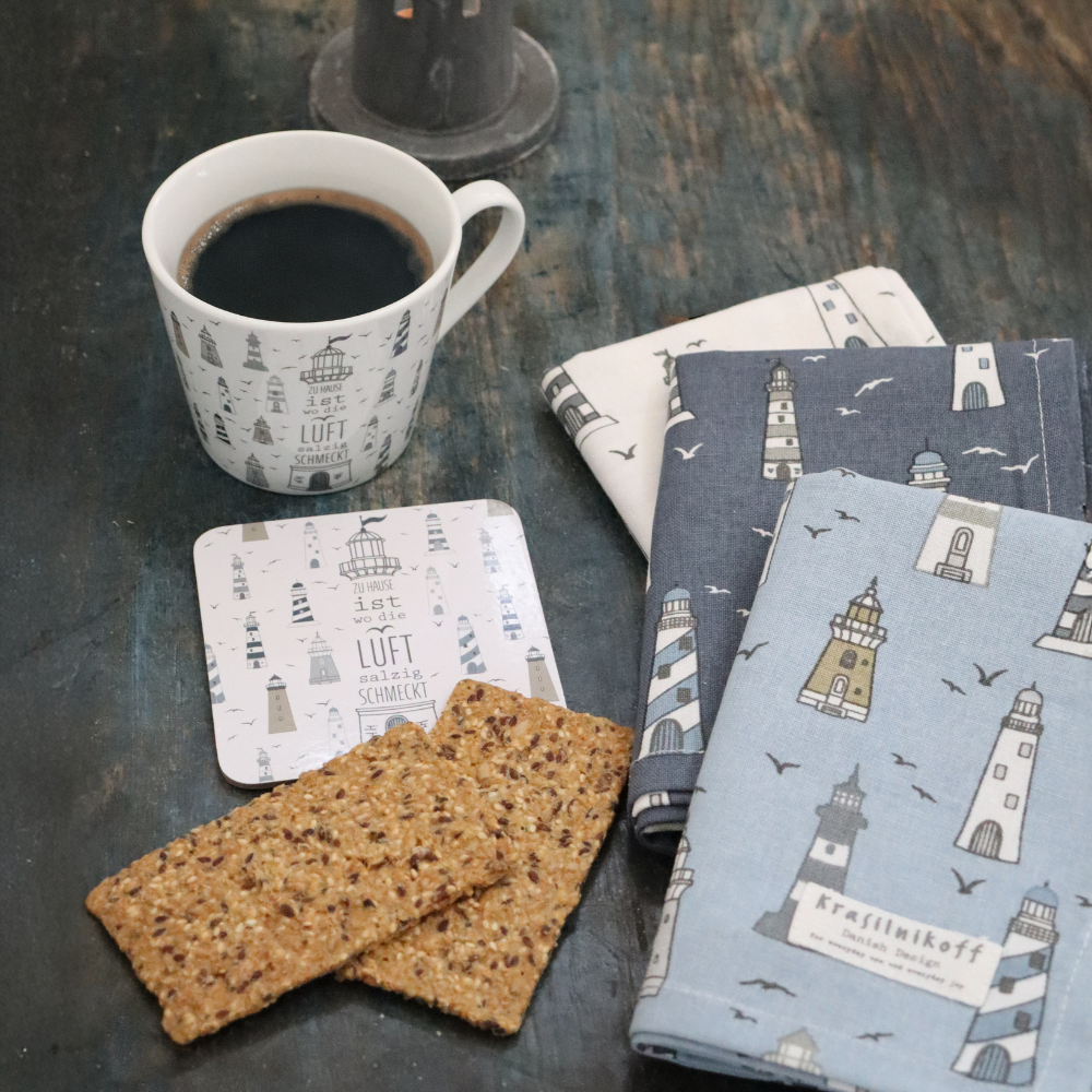 The Krasilnikoff tea towels for everyday use and everyday joy. They are available in many beautiful patterns, colours and designs. They can be mixed and matched with a large selection of porcelain, zinc products and other textiles. To reduce wrinkles and increase the absorbency factor of your tea towels, soak them in cold water for 24 hours before the first wash.
