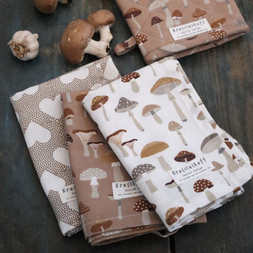 The Krasilnikoff tea towels for everyday use and everyday joy. They are available in many beautiful patterns, colours and designs. They can be mixed and matched with a large selection of porcelain, zinc products and other textiles. To reduce wrinkles and increase the absorbency factor of your tea towels, soak them in cold water for 24 hours before the first wash.