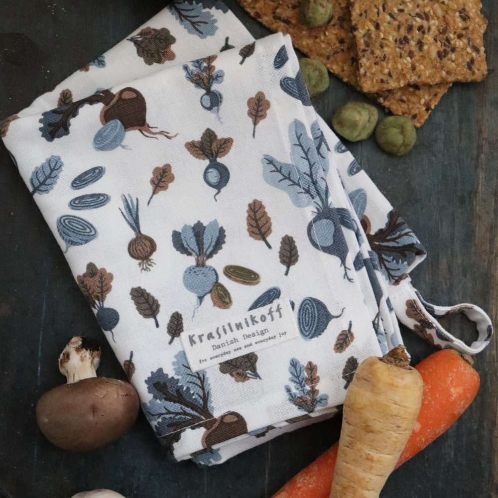 The Krasilnikoff tea towels for everyday use and everyday joy. They are available in many beautiful patterns, colours and designs. They can be mixed and matched with a large selection of porcelain, zinc products and other textiles. To reduce wrinkles and increase the absorbency factor of your tea towels, soak them in cold water for 24 hours before the first wash.