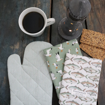 The Krasilnikoff tea towels for everyday use and everyday joy. They are available in many beautiful patterns, colours and designs. They can be mixed and matched with a large selection of porcelain, zinc products and other textiles. To reduce wrinkles and increase the absorbency factor of your tea towels, soak them in cold water for 24 hours before the first wash.