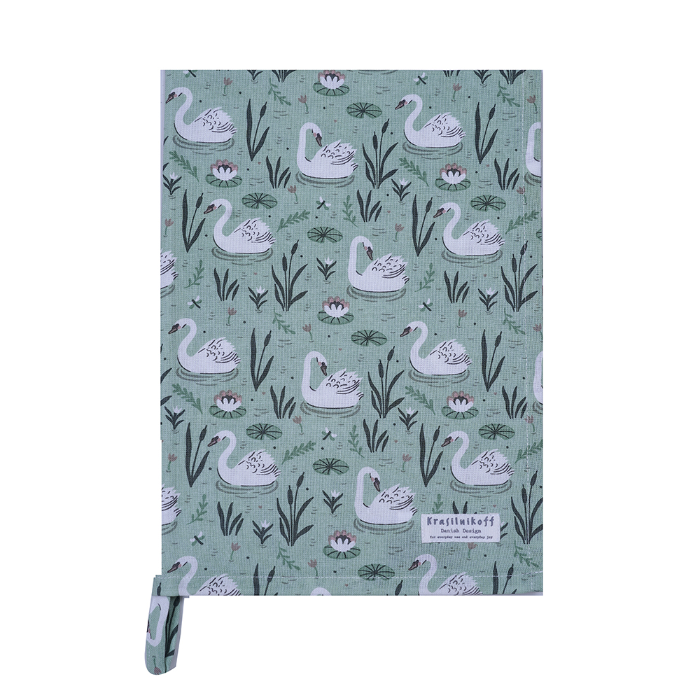 TEA TOWEL SWAN LAKE GREEN