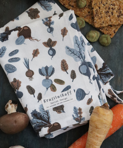 TEA TOWEL VEGETABLE GARDEN BLUE